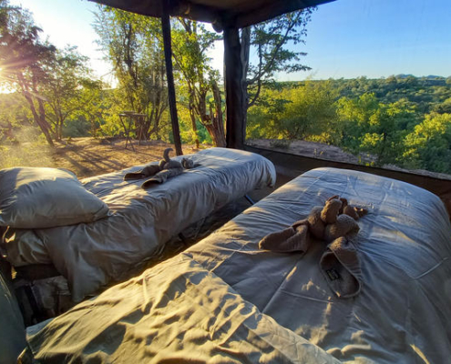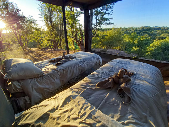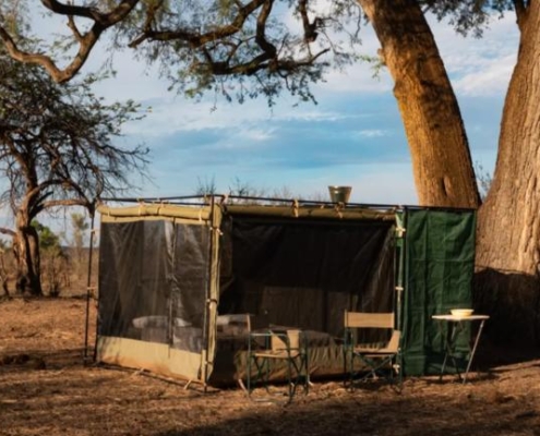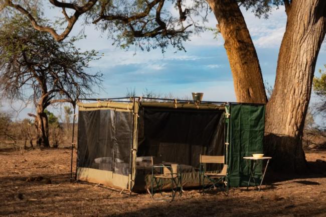 Nach der Landung auf dem Shumba Airstrip werden Sie empfangen und zu Ihrem mobilen Camp gebracht. Mitten in der Natur gelegen, beginnt hier Ihr intensives Safari Erlebnis fernab fester Lodges.