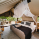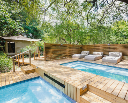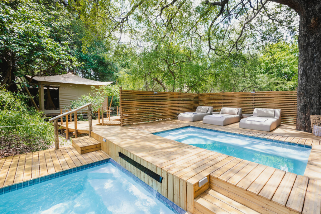 Die Unterkunft besteht aus nur sechs freistehenden, großzügigen Safari Zelten, die entlang des Flussufers positioniert sind und sich harmonisch in die Landschaft einfügen. Warme Naturmaterialien, helle Stoffe und offene Strukturen schaffen eine ruhige, entspannte Atmosphäre mit eindrucksvollem Blick auf den Sambesi. Jedes Zelt verfügt über ein komfortables Bett, ein eigenes Badezimmer mit Innen und Außendusche sowie eine Toilette mit Wasserspülung. Eine private, überdachte Veranda lädt dazu ein, die Natur in aller Ruhe zu genießen. Der offen gestaltete Hauptbereich des Camps umfasst eine Lounge und einen Essbereich unter freiem Himmel, die in ein Außendeck mit Pool übergehen. Ergänzt wird dieser Bereich durch ein separates Barzelt sowie eine gemütliche, tiefergelegene Feuerstelle mit Blick auf den Fluss, ein stimmungsvoller Ort für den Abend. Durch die kleine Anzahl an Zelten entsteht eine persönliche und intime Atmosphäre, die Tsowa Safari Island zu einem stilvollen Rückzugsort für Reisende macht, die Ruhe, Komfort und Natur auf besondere Weise miteinander verbinden möchten.