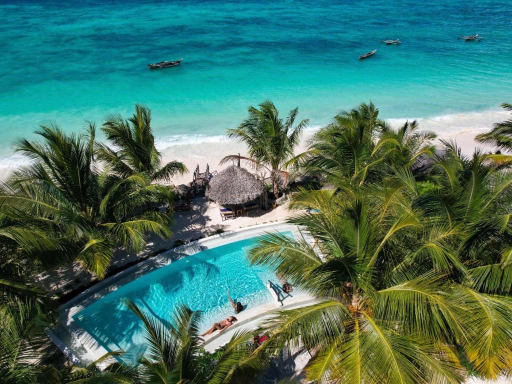 Die Villa Juliana in Jambiani ist ein Ort, an dem die Zeit langsamer zu fließen scheint. Direkt am endlosen weißen Sandstrand gelegen, weckt sie das Gefühl, mitten in einem Postkartenmotiv zu erwachen: das leise Rauschen der Wellen, der warme Indische Ozean vor der Tür und ein Himmel, der in unzähligen Farben leuchtet. Die Villa selbst strahlt mit ihren Korallensteinwänden, Palmendächern und liebevoll gefertigten Möbeln aus alten Booten eine authentische, natürliche Schönheit aus. Nachhaltigkeit ist hier kein Schlagwort, sondern spürbare Realität – vom Solarstrom bis hin zu frischen Zutaten aus der Region. Gäste genießen ihre Mahlzeiten auf der Terrasse mit Blick aufs Meer, lassen sich im Infinity-Pool treiben oder versinken in einem guten Buch im Schatten der Palmen. Doch was Villa Juliana wirklich besonders macht, ist die herzliche, persönliche Atmosphäre: Man fühlt sich nicht wie ein Tourist, sondern wie ein willkommener Freund, der in einem kleinen Paradies zu Gast ist..